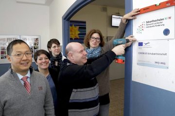 Das Amplonius ist Zukunftsschule – Seit Ende Dezember ist es amtlich, das Amplonius-Gymnasium in Rheinberg ist nun auch offiziell eine Schule der Zukunft. Am 16.12.2015 wurde das Label (Auszeichung in Form eines Schildes) „Zukunftsschulen NRW – Netzwerk Lernkultur Individuelle Förderung“ in einem feierlichen Akt von der Bezirksregierung, vertreten durch Herrn LRSD Holtschneider und Frau Schury, überreicht. Die Auszeichung zeichnet nun für jedermann sichtbar das Amplonius-Gymnasium als eine Schule aus, die ihre Unterrichts- und Schulentwicklung am Leitbild der individuellen Förderung ausrichtet und für die beste Umsetzung dieses Ziels in einem Netzwerk mit anderen Schulen zusammenarbeitet.