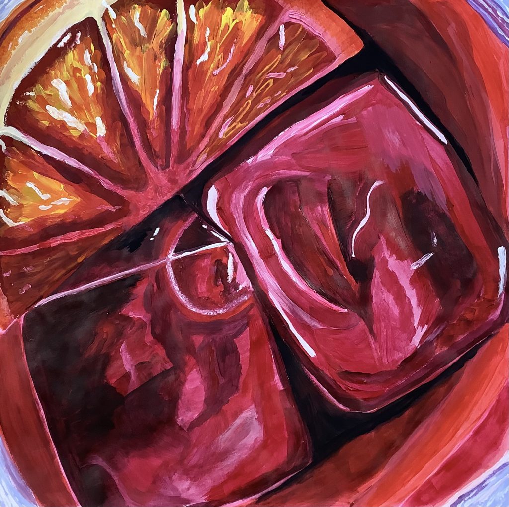 Das Kunstwerk des Monats ist eine Acrylmalerei zum Thema „Abstraktion“ von Pia, gemalt in der Q2.